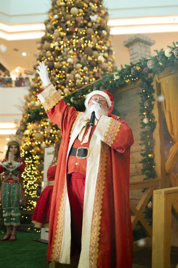 A atmosfera encantadora é preenchida pela presença da casinha do Papai Noel, o trono do Bom Velhinho, uma caixinha de correio para as cartinhas de pedidos, um troninho pet e uma impressionante árvore de Natal de 14 metros. Para completar, elementos como guirlandas gigantes com cascatas de LED, cantinhos instagramáveis, animatrônicos, casinha com escorregador infantil e balanço adaptado para PCDs tornam o ambiente ainda mais especial.