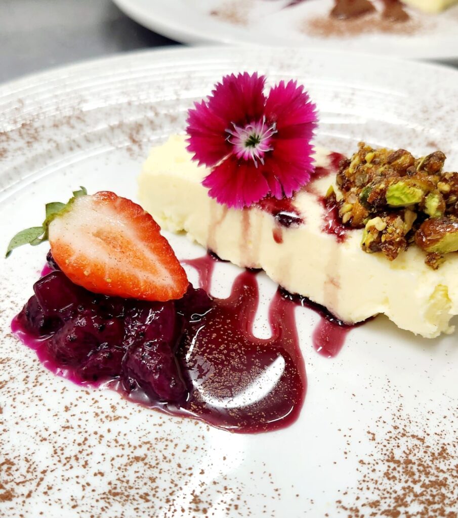 Para finalizar, as propostas são, no pré dessert, o Sgroppino Al Pomodoro e Miele Di Fiori D’Arancio, um sorbet de tomate e mel de flor de laranjeira, acompanhado pelo vinho francês Rosé de la Solitude 2017; e, de doce, o Bavarese All’Amaretto e Croccanza di Pistacho, um flan ao licor de amaretto com redução de vinho passito e crocante de pistache. Este último prato é harmonizado com o francês Cuvée Sidoine Rosé 2021.