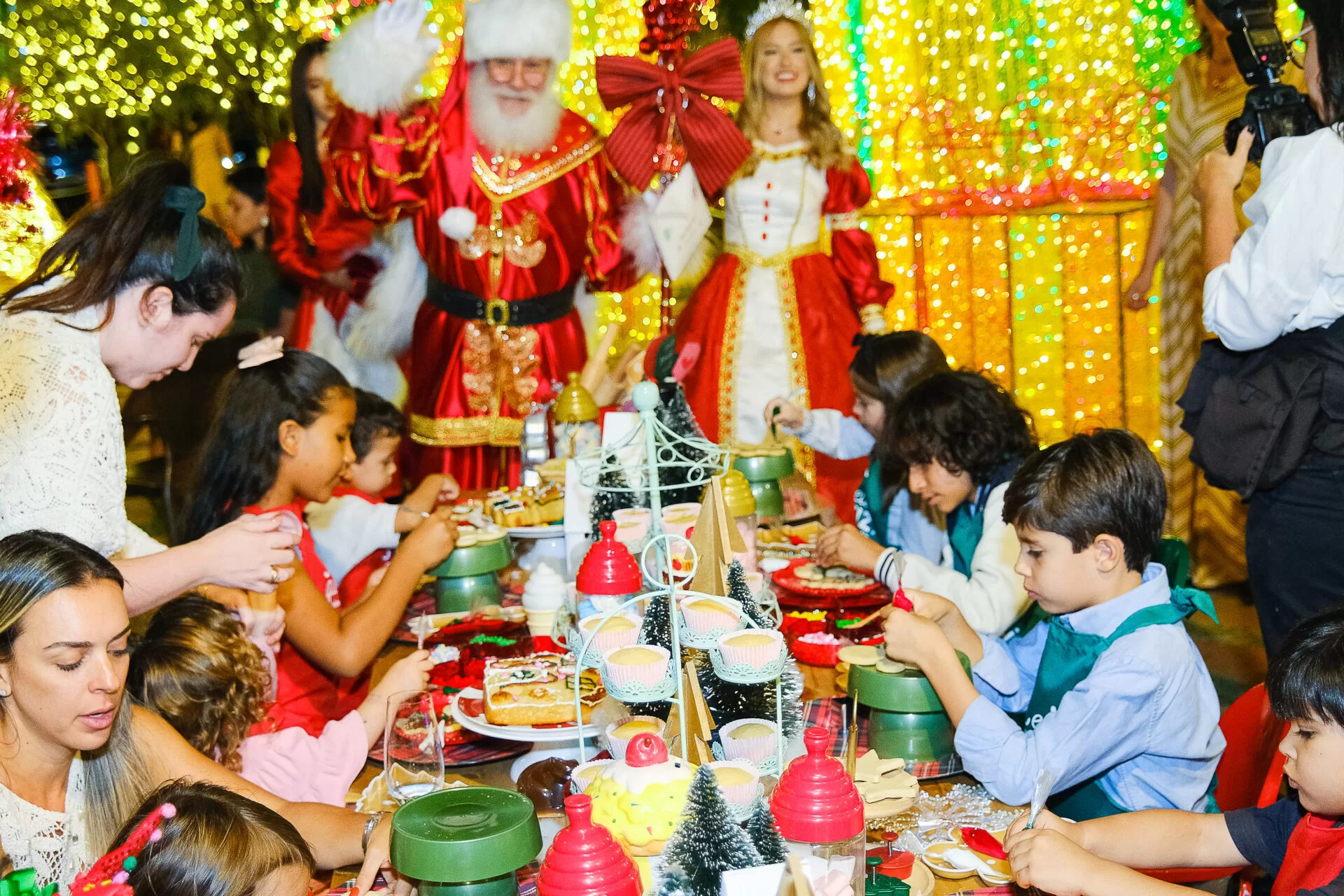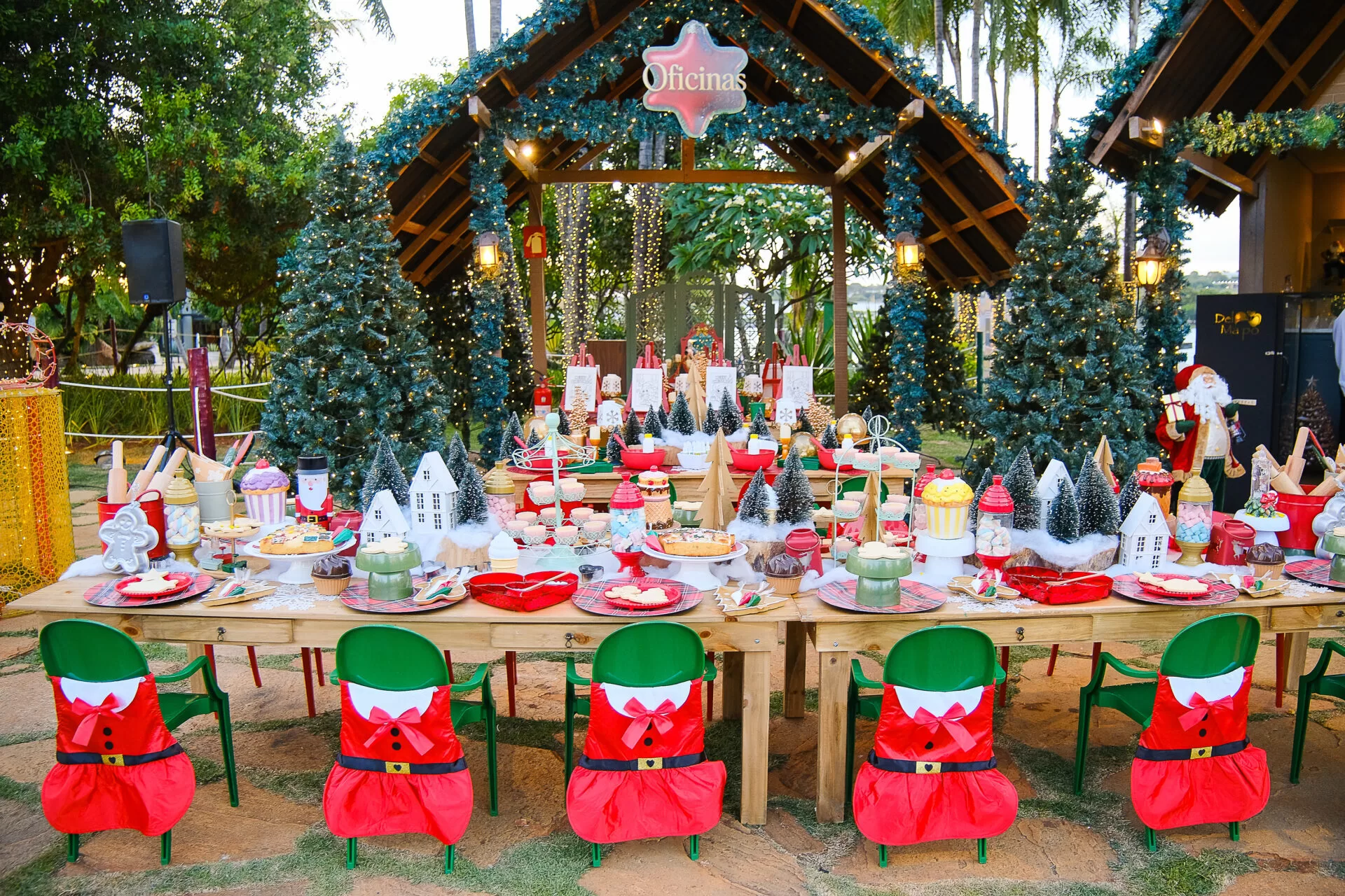 A decoração “Natal Imperial” transformou o Pontão em um cenário encantador, repleto de elementos que remetem à elegância dos tempos renascentistas. As cores clássicas do Natal – verde, vermelho e dourado – tomaram conta do ambiente, criando uma atmosfera de sonho. O grande pórtico iluminado em forma de laço, o presépio, as caixas de presentes e as renas, além da árvore natalina de 14 metros de altura, encantaram os visitantes. Um café e um carrinho de doces completaram a experiência, trazendo sabor e aconchego ao evento.