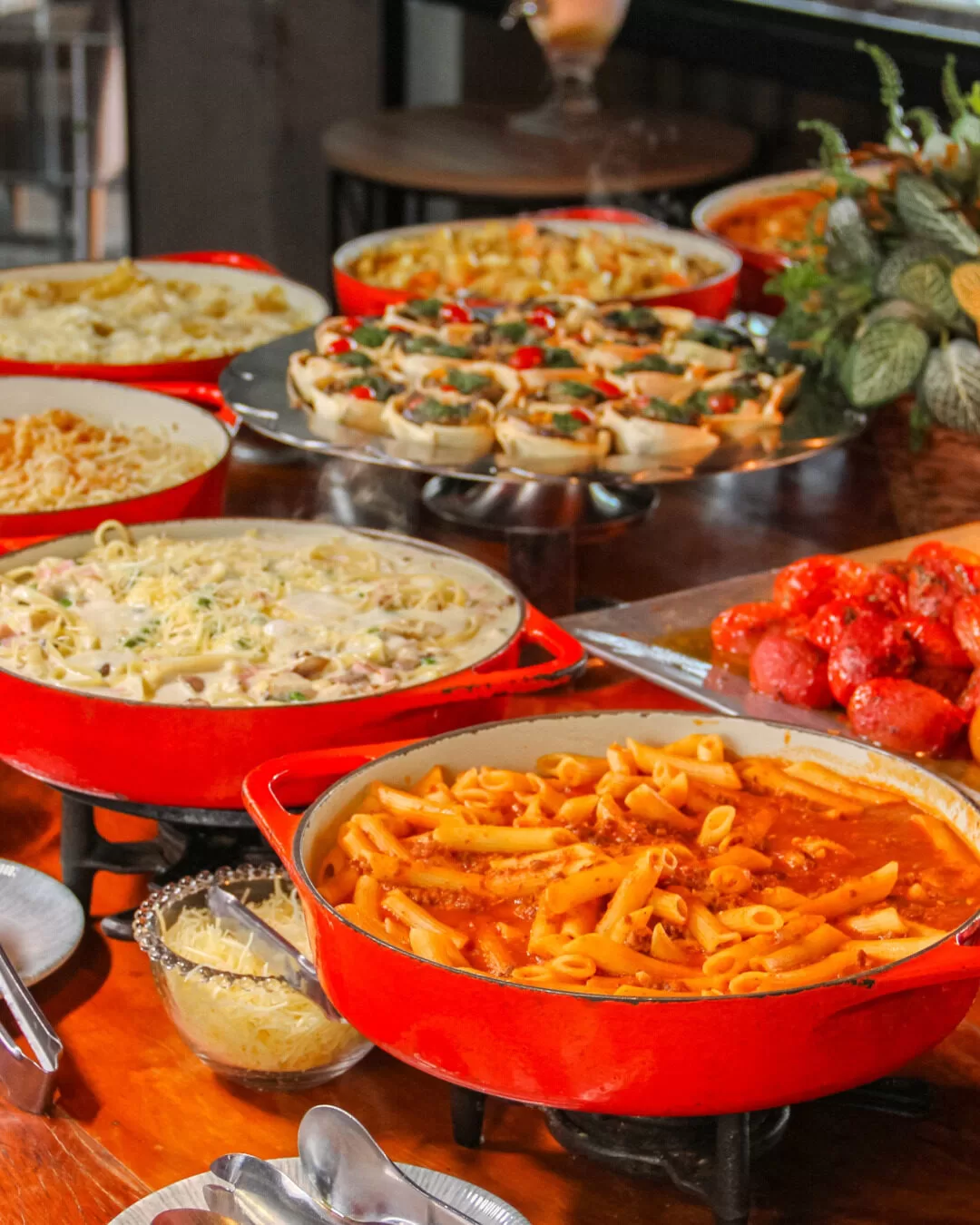 Servido das 11h30 às 15h30, todos os dias, o buffet de almoço conta com ilhas completas de saladas, proteínas, guarnições, massas e risotos. Também é possível escolher um grelhado (180g por pessoa), como carne de sol, bife ancho, picanha, peito de frango e filé de tilápia. O valor é de R$ 87,00 por pessoa, enquanto aos domingos e feriados custa R$ 99,80.