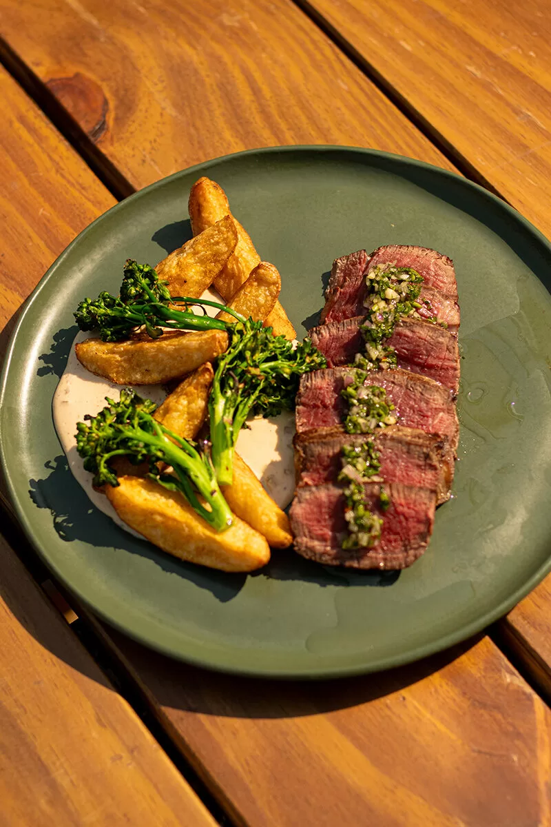 No CHARD, três sugestões deliciosas e práticas para o almoço são o galeto desossado com legumes na brasa, bife de chorizo black angus com fritas e arroz cremoso de cogumelos com cubos de black angus — que custam, respectivamente, R$ 79,00, R$ 129,00 e R$ 109,00.