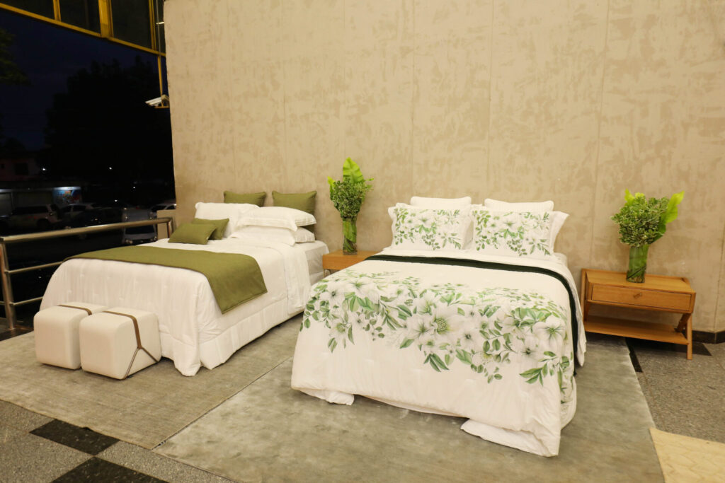No espaço, uma seleção exclusiva, com o melhor da tecnologia, para tornar o seu momento pessoal ainda mais especial. A pureza e a luminosidade do branco convidam às boas sensações. Elementos botânicos, em criações inéditas, se destacam nas colchas em estampa digital com alta definição. Já os tradicionais modelos bordados apresentam as melhores técnicas da alta costura, com riqueza de detalhes, caimento impecável e acabamentos de alto padrão.