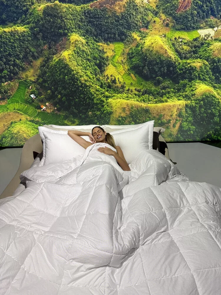 A vivência foi guiada por uma professora especializada, com projeções visuais, aromas, música suave e uma ambientação sensorial inspirada nos elementos naturais da nova coleção Inverno Casa, recém-lançada na ocasião. A coleção é marcada por texturas suaves, bordados artesanais e tecidos que envolvem: como o edredom Sereno, destaque da estação.
