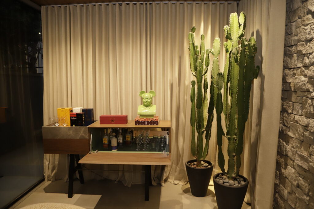 A Quadra criou a vitrine “Um Canto para Chamar de Meu”, assinada pelo arquiteto Hélio Albuquerque. Com a temática raízes, o arquiteto desenvolveu o espaço Man’s cave, ambiente pensado para viver momentos de diversão e relax.