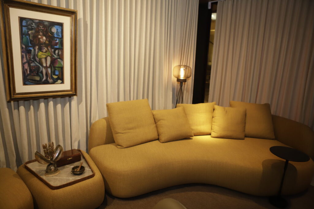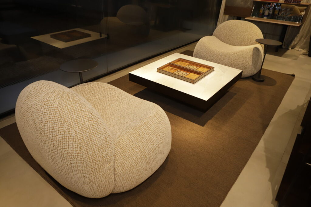“Essa vitrine foi criada para mostrar um espaço que o dono da casa pode receber os amigos, a família e os filhos. Como eu gosto de trabalhar com arte, desenvolvi um ambiente que unisse diversão como a proposta de jogar carteado, compartilhar drinks, um lounge de possibilidades”, revela Hélio. “O mobiliário da Quadra faz parte desse cenário com um design bem assinado. Um leque enorme de possibilidades, um corner dentro de um espaço”, finaliza o arquiteto.