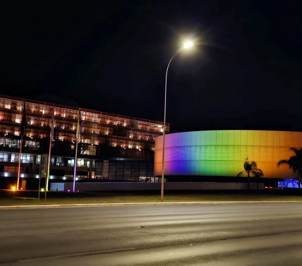 Em alusão ao Dia Internacional do Orgulho LGBTQIAPN+, celebrado em 28 de junho, alguns órgãos públicos e federais receberam iluminação com as cores da bandeira que representa a diversidade. O arco-íris luminoso iniciou, na noite da terça-feira (27), o alerta pela defesa de uma sociedade mais igualitária e livre de preconceitos. A proposta tem o objetivo de chamar atenção da população para a temática.