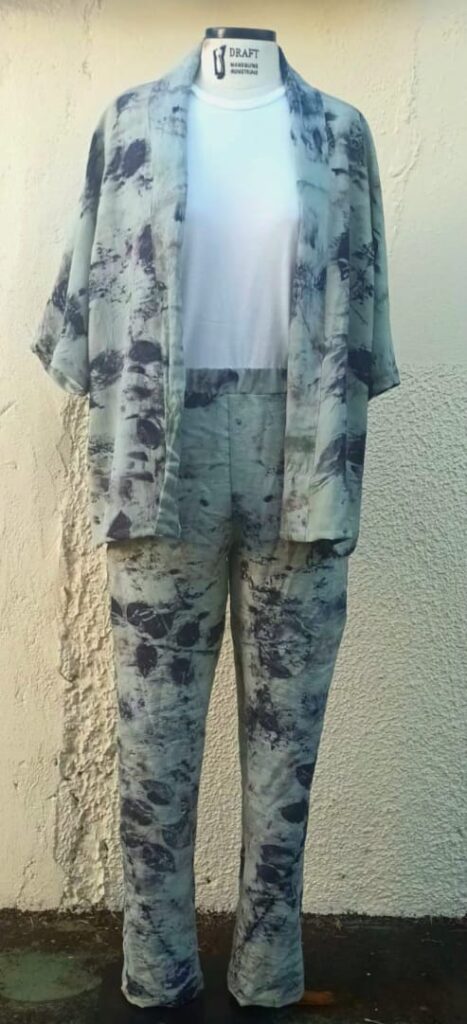 Entre as criações que serão apresentadas, lenço, roupa e tênis confeccionados com tecido com tingimento natural produzido pela Bosque. “Amantes da moda sustentável e consciente poderão encontrar o meu trabalho no coração da loja Virgínia Barros em Brasília. Cada peça é única, pois é produzida artesanalmente”, diz Raquel Bogéa.