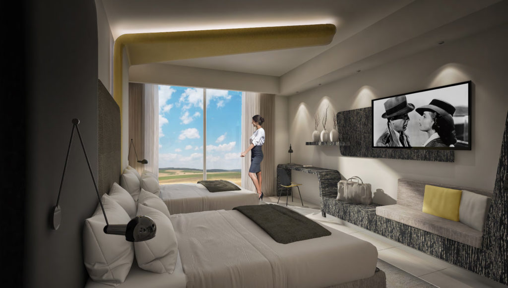 Situado no coração do cerrado, o design e projeto arquitetônico conceitual trazem para a obra a paixão por nosso país e pelos traços de Oscar Niemeyer com elementos inspirados no bioma, onde pode ser observado características da ‘savana brasileira’ logo no lobby, por meio da obra “Craquelado”, da artista Thayna Carneiro. Com uma rica referência na cultura do país, os grafismos que estão em suas paredes remetem a muitas das nossas cidades. As curvas de Niemeyer se fazem presentes desde os detalhes dos corredores até a marcenaria exclusiva e arredondada da cabeceira dos móveis das suítes, contribuindo para uma experiência única, elegante e surpreendente para os hóspedes.