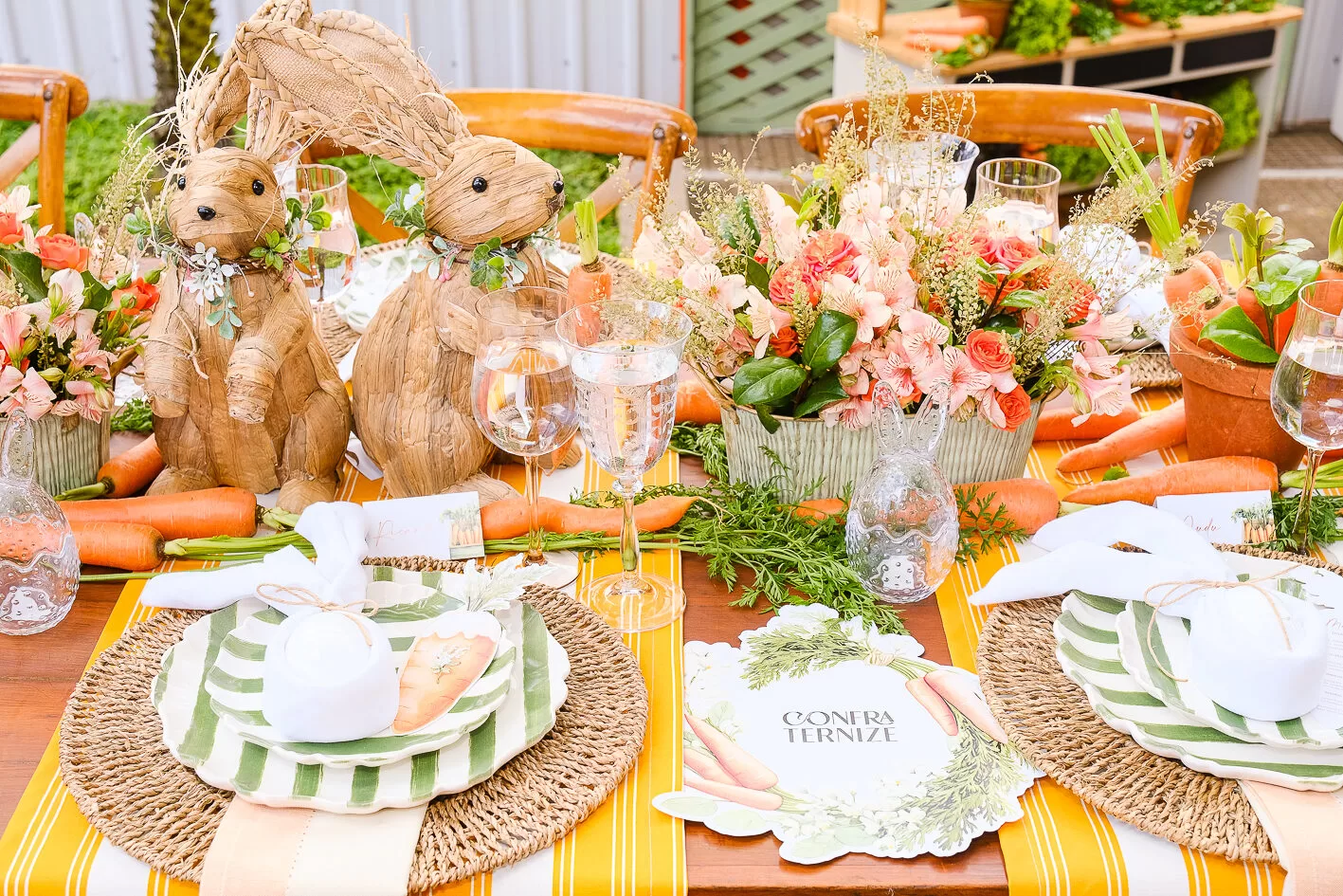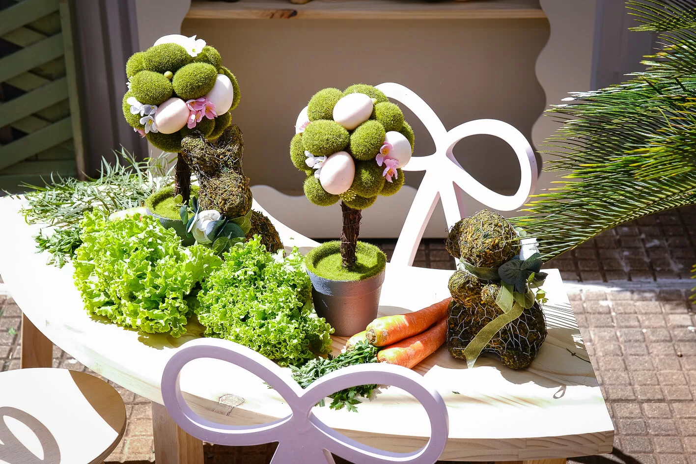 Com uma proposta estética sensível, o evento apostou em uma Páscoa onde elementos naturais e composições delicadas ganharam protagonismo. Entre cenouras que pareciam brotar do espaço e uma ambientação orgânica, o cenário reforçava a beleza da simplicidade e o valor do tempo presente.