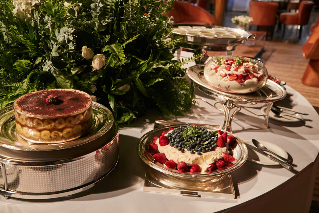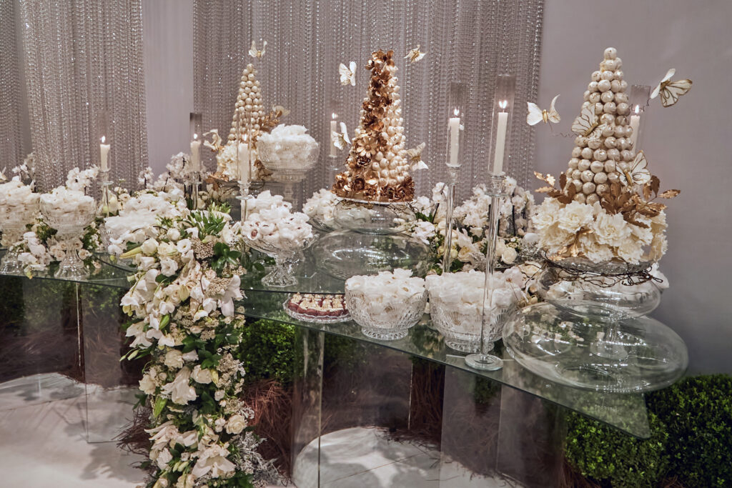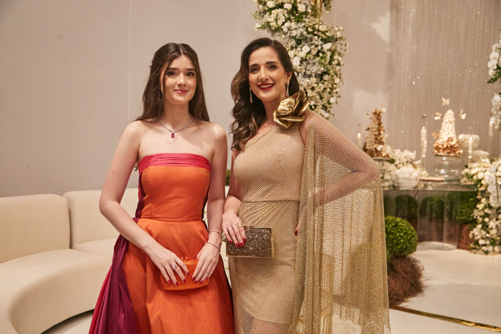 A festa foi regada a Veuve Clicquot, whisky e drinks diversos. O jantar foi do Hanna buffet de Goiânia, doces da brasiliense Maria Amélia, que também foi responsável pelo bolo confeitado com mais de mil mini-flores de açúcar. O evento seguiu animado até o amanhecer, com direito a café da manhã.