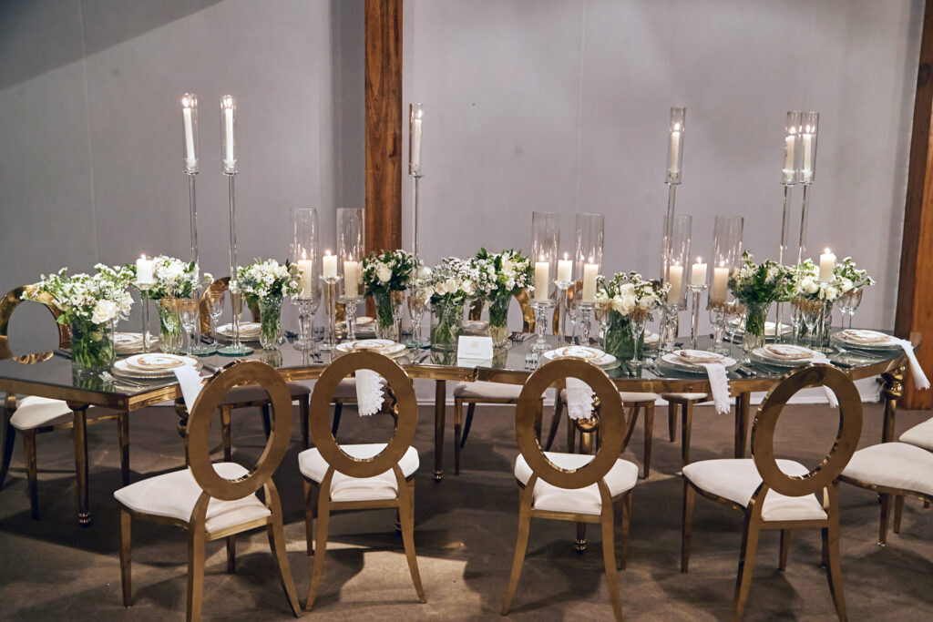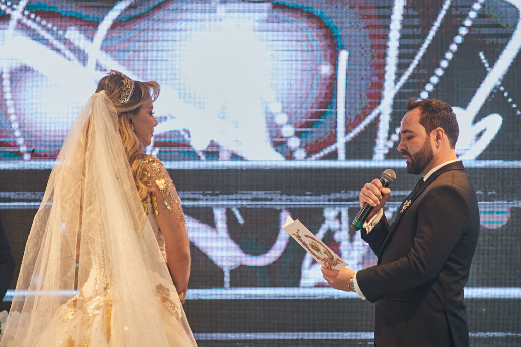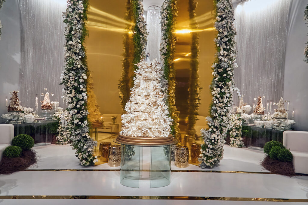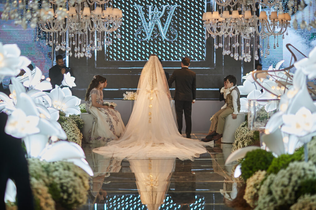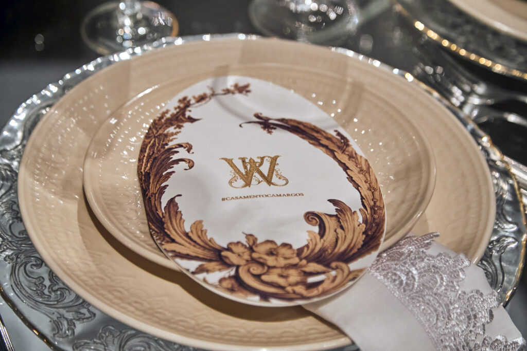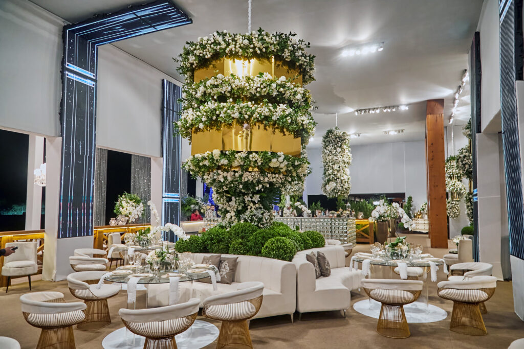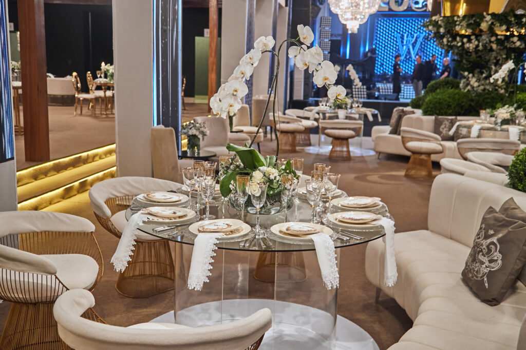 Depois de casarem em Dubai em uma cerimônia luxuosa há dois anos, Wanderson e Kelly resolveram renovar os votos junto dos amigos na fazenda próxima a capital federal. E a festa, para cerca de 300 convidados, não ficou devendo nada em termos de luxo e diversão. O convite, uma criação da Paper Chic, já anunciava que seria um grande acontecimento. O profissional Kaká Fagundes começou a trabalhar na idealização da festa por cinco meses e construiu uma estrutura de 2 mil e 500 metros quadrados, dividido em um espaço para a cerimônia e outro para a festa. Com uma rica decoração, os espaços foram ornados com 26 lustres e cortinas de cristal espalhados pelos ambientes, uma cascata de led, 800 vasos de orquídeas, 12 mil botões de rosa e várias flores naturais nobres, além de mil velas para compor a ambientação.
