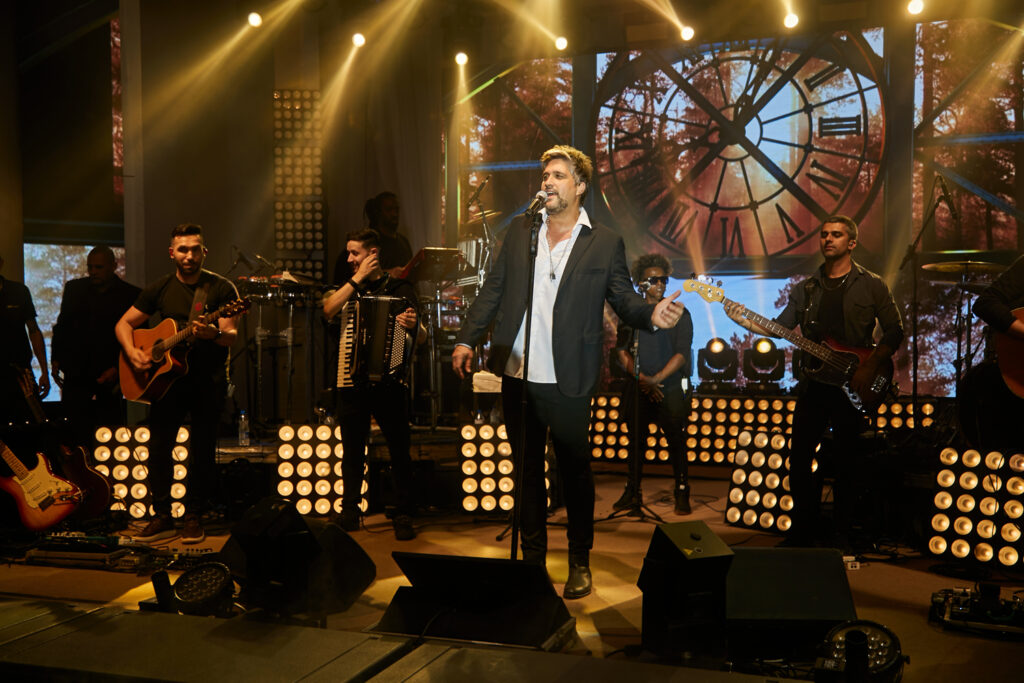 Família no palco ao som de Leo Chaves