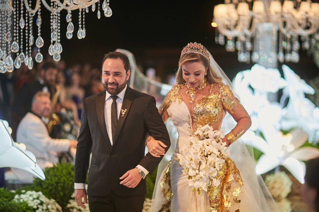 Wanderson e Kelly Camargos com o segundo vestido da noite assinado por Atlelier Fernando Peixoto