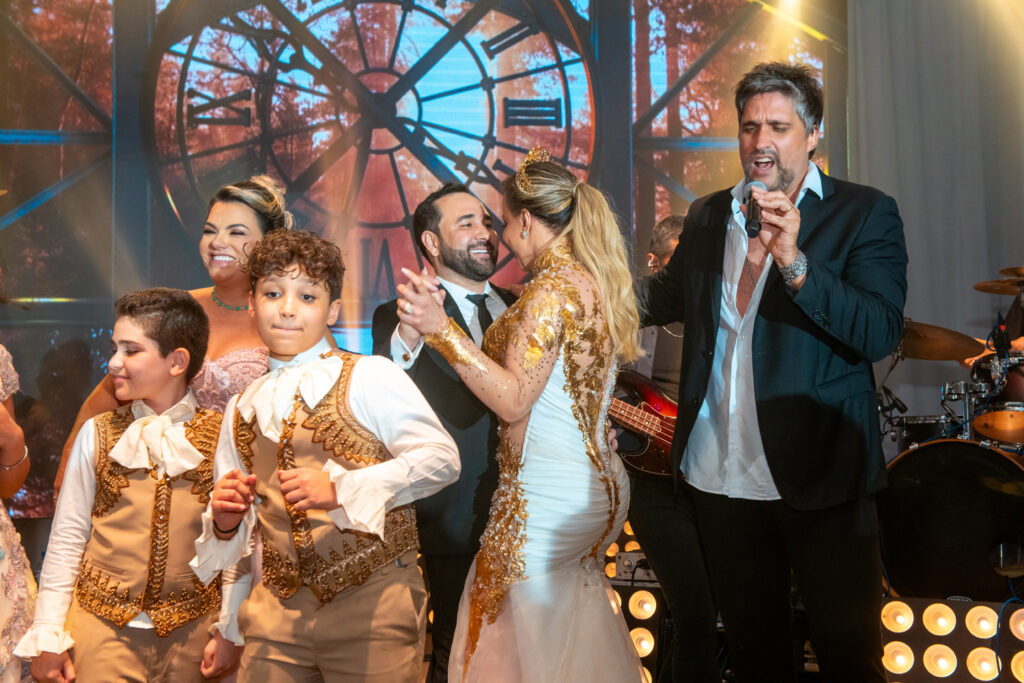 A Fazenda Camargos, localizada a cerca de 150 quilômetros de Brasília, foi o cenário escolhido para a cerimônia de renovação de votos de Wanderson e Kelly Camargos. Junto dos filhos Esther, Júnior, Lara Giulia e Rilck, o casal recebeu os parentes e amigos para uma noite especial.