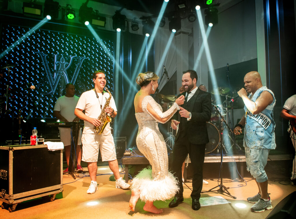 Um show pirotécnico e atrações musicais surpresas brindaram os convidados. A primeira apresentação foi de Léo Chaves, da ex dupla Vitor e Leo, seguido de um show com muito suingue de Reinaldinho, ex Terra Samba. O pianista e showman Rodrigo Soltton, do Rio Grande do Sul, deu um show a parte em dois momentos. Tocando na hora da cerimônia e depois durante a festa, entre as duas atrações principais.