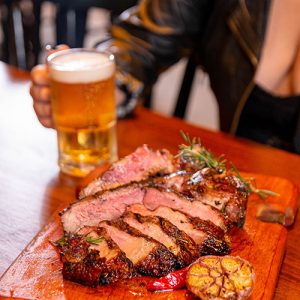 Segundo Alexandre, o termo Steak Bar & Lounge veio para denominar a mescla da carne assada com bebidas sofisticadas e, até mesmo, o churrasco a molhos e pratos mais refinados. Mas porque Hawk? O principal motivo se deu pelo carro-chefe da casa, o Tomahawk (R$ 247 – serve até quatro pessoas): um prato com aproximadamente 1,3 quilos de carne extremamente suculenta e macia, com um osso de até 30 centímetros que deixa o corte imponente na hora de servir, e ainda confere a ele um sabor único. A carne é servida acompanhada por um arroz biro birô, legumes grelhados, farofa de ovos, batata crocante com ervas e polenta frita.