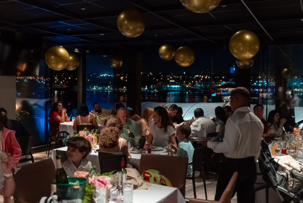 No menu, um buffet completo com entradas, jantar, sobremesas e bebidas. Entre as opções, queijos e frios; bolinho de bacalhau; camarão crocante; carpaccio de carne; dadinho de tapioca; terrine de salmão; terrine de tomate seco; ceviche clássico; ceviche de salmão; tempurá de legumes; salada de lentilha; panceta assada; chester à Califórnia; bacalhau ao forno; bife ancho ao molho de mostarda; canelone recheado de espinafre, ricota e amêndoas; batatas ao murro; arroz branco; arroz com frutas secas; ratatouille.