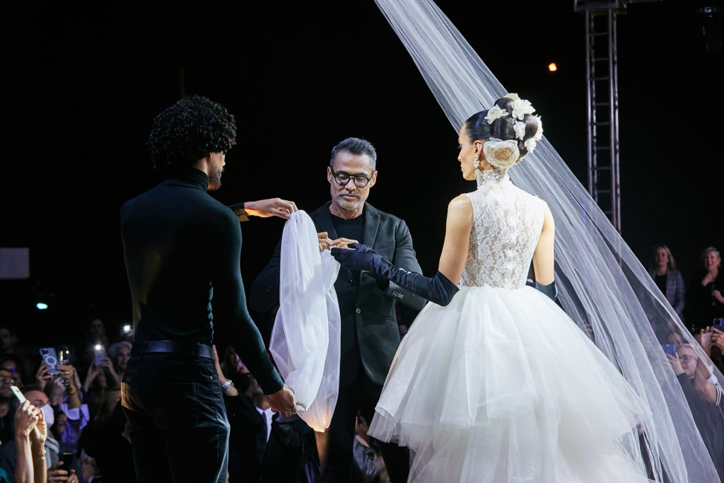 Mas dessa vez, Ricardo mostrou mais do que produções de cabelo e make e fez uma surpresa para os convidados, finalizando o desfile com uma criação própria de um vestido em collab com a Santis Noivas. Inspirado na diva Grace Kelly, o modelo de estilo clássico, fará parte de uma coleção cápsula que será lançada até o final do ano. Mas Ricardo faz questão de avisar que não vai virar estilista de noivas.