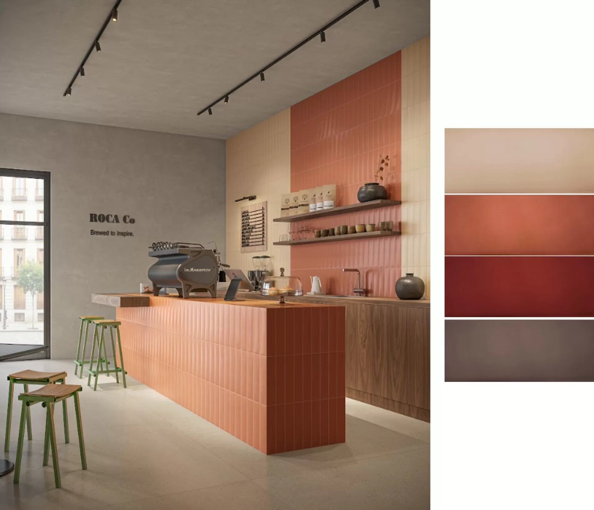 Nas cores Clay, Tile, Carmine e Brown, a Série Ombré é aclamada por sua textura suave, ritmo visual e efeito destonalizado para o revestimento de paredes | Foto: Divulgação Roca Cerámica