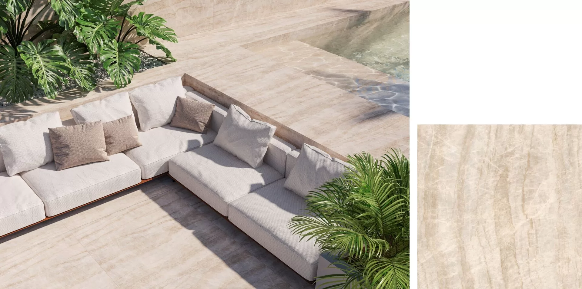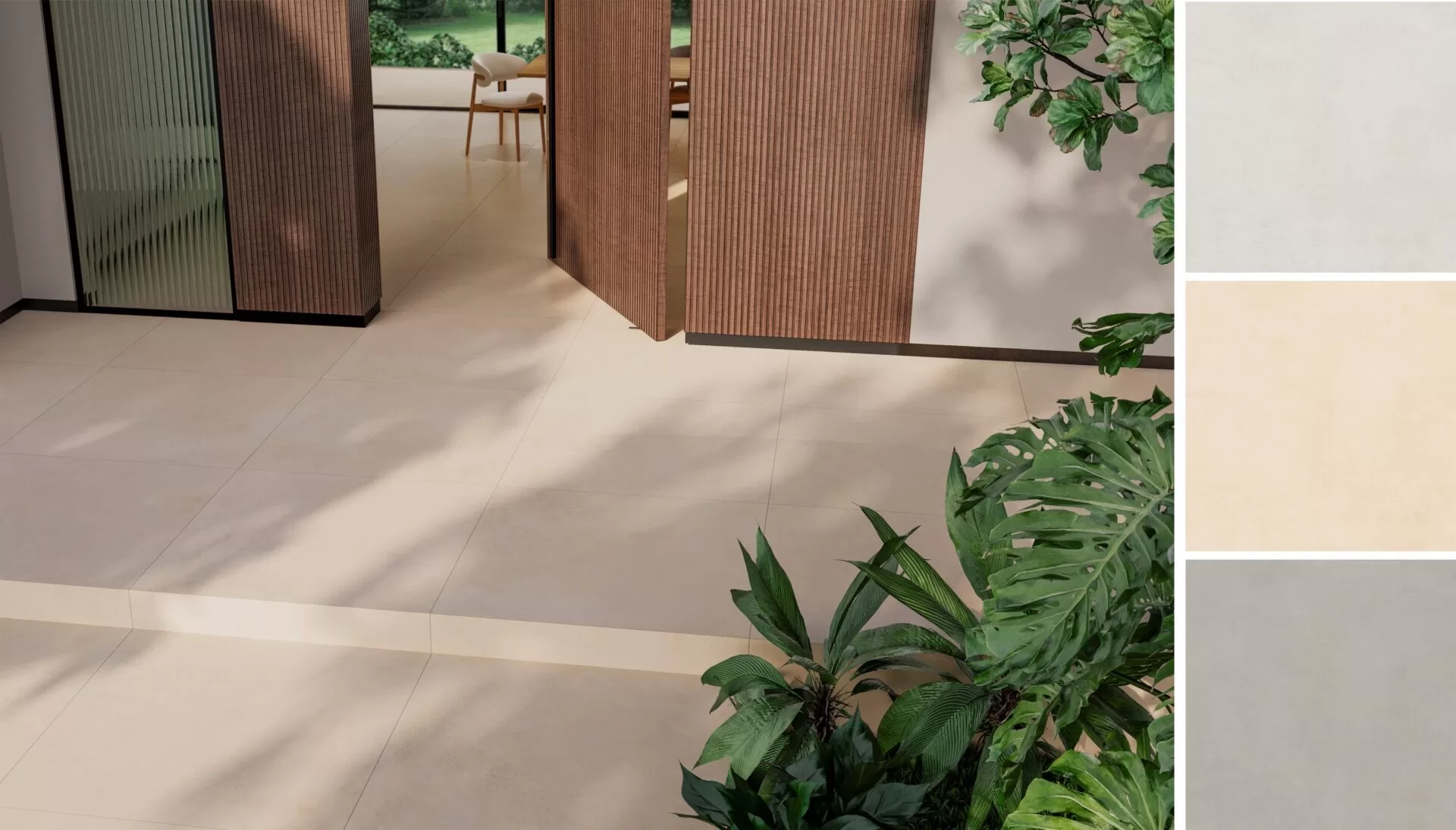 A Série Zeno se apresenta em quatro tonalidades: Beige, Grey, Off-White e White, na nova dimensão 80 x 80 cm | Foto: Divulgação Roca Cerámica