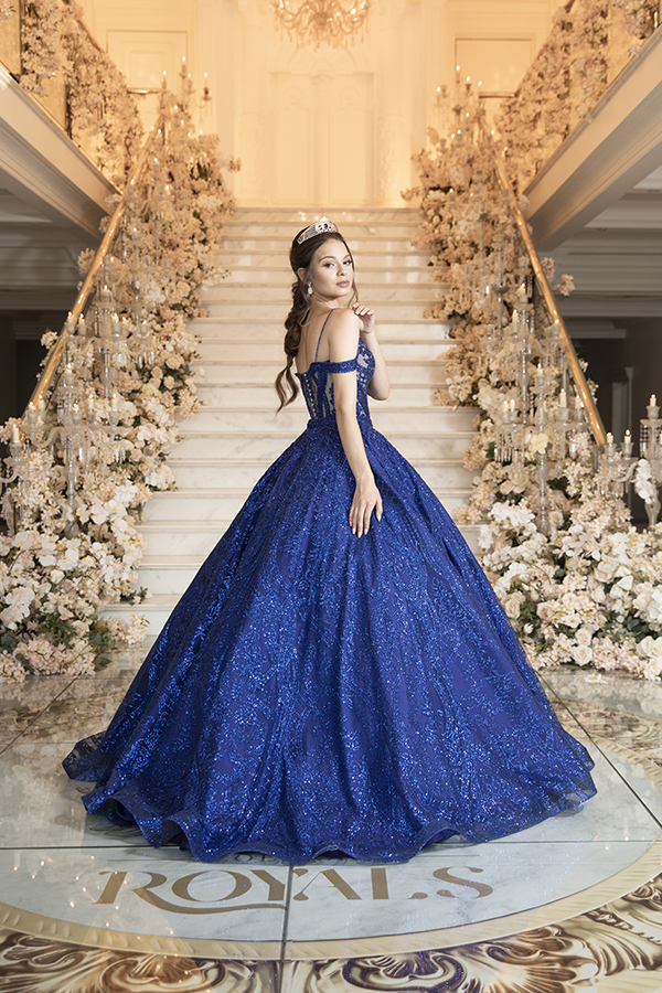 Diferente das outras coleções, onde noivas vem separadas de debutantes, na Royale soma-se exatamente 53 vestidos, sendo 17 (dezessete) deles somente para festas de 15 anos. O destaque está no mix de cores que contam com diferentes tons de rosados, ou seja, desde os violáceos, passando pelo rosé, o bebê, até o candy colour. Também têm propostas em tons de azul, verde, prata suave, coral quase laranja, e finalmente as estampas de florais para realçar ainda mais o brilho e as texturas dos tecidos. Entre eles, a renda francesa e renda soutache e o brilho surreal garantido pela organza flocada com glitter, que uma verdadeira princesa merece.
