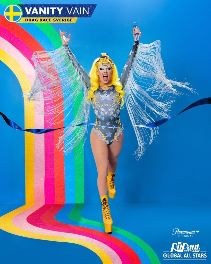 Vanity Vain, natural de Linköping, Suécia, terminou em terceiro no Drag Race Suécia. Morando em Estocolmo, Vanity faz drag há oito anos e descreve sua estética como “muito rock’n roll, anos 80, sexy”. A arte drag salvou sua saúde mental, dando-lhe confiança, e sua participação no Drag Race Suécia permitiu a ela dedicar-se ao tema em tempo integral. Vanity adora atuar e cantar, mas teme desafios de comédia. Conhecida por suas excelentes habilidades de maquiagem, ela está pronta para a competição com garras afiadas e sapatos lustrados.