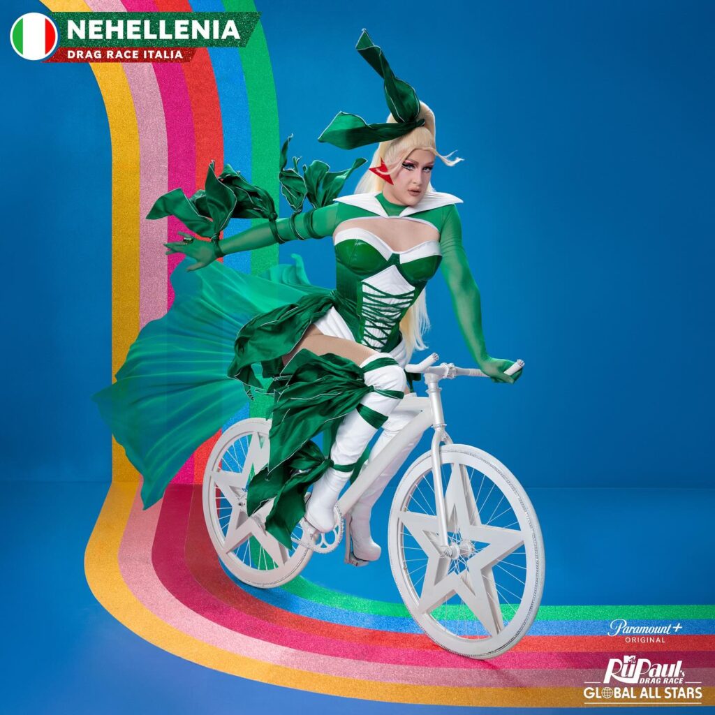 Nehellenia, de Roma, Itália, foi vice-campeã e Miss Simpatia em sua temporada de Drag Race Itália. Com 11 anos de experiência como drag, Nehellenia é conhecida por sua personalidade emocional e forte. Tendo crescido significativamente desde a última vez que foi vista, ela está pronta para competir no cenário global, trazendo para a competição seu drag maduro e refinado.