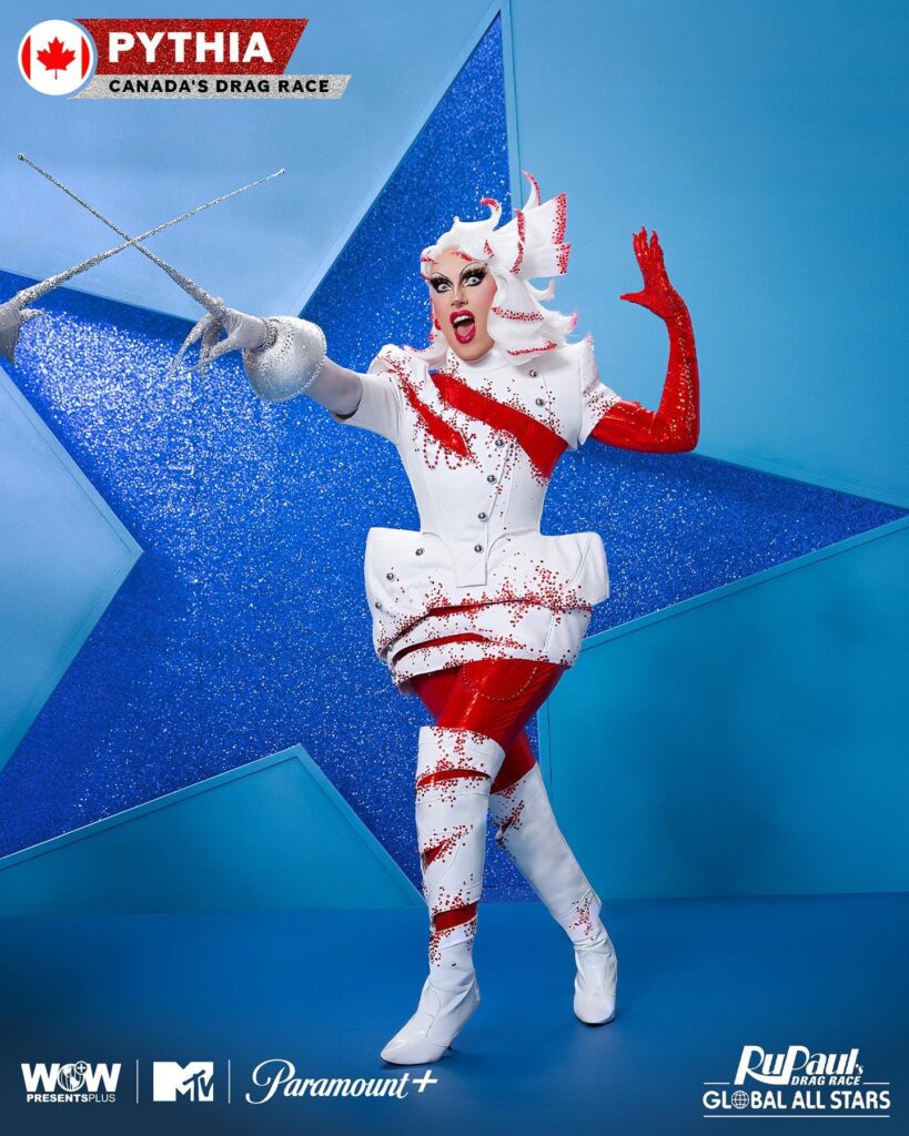 Pythia é uma rainha que mistura elementos históricos e míticos em sua drag, criando um estilo único e cativante. Conhecida pela sua criatividade e atenção aos detalhes, ela traz uma nova perspectiva para a competição. Pythia pretende impressionar o público global com sua abordagem inovadora ao drag.