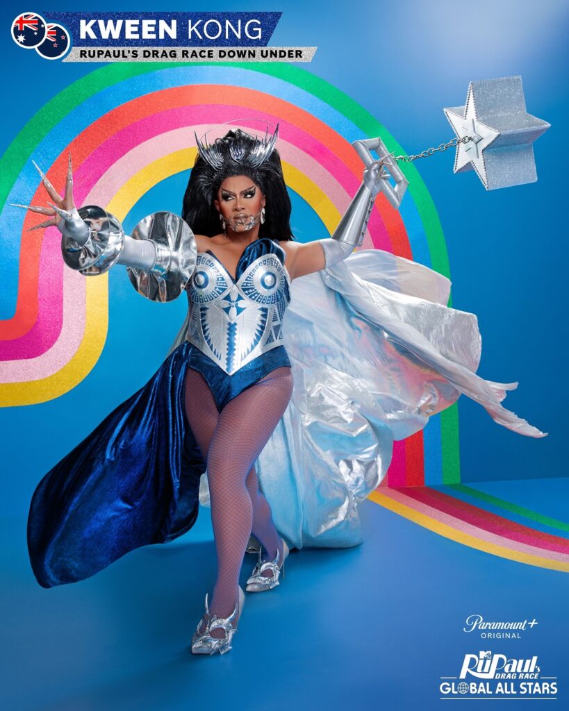 Kween Kong nasceu em Adelaide, Austrália, e é conhecida por suas performances poderosas e pela herança tonganesa-samoana. Finalista durante sua temporada de RuPaul’s Drag Race Down Under, Kween também é dançarina e coreógrafa profissional. Líder da Haus of Kong, ela é apaixonada pelo ativismo e pretende usar essa paixão para conquistar a coroa.