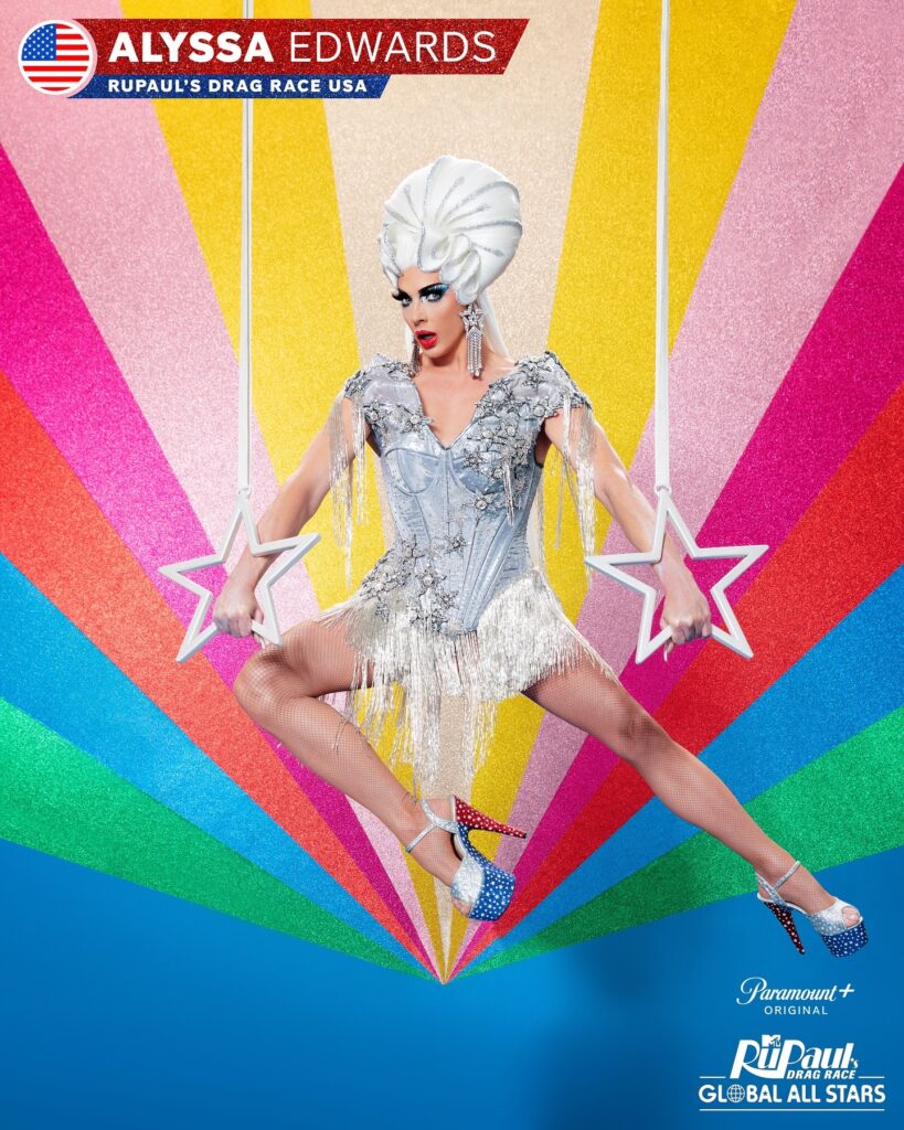 Alyssa Edwards é uma lendária drag queen do Texas com 23 anos de experiência. Alyssa é famosa por seu papo sincero, sua personalidade peculiar e uma estética drag ousada, grandiosa e exagerada que incorpora o espírito texano. Dona da Beyond Belief Dance Company apresentada na série Dancing Queen, o objetivo de Alyssa é o título de “Queen of the Mothertucking World”.