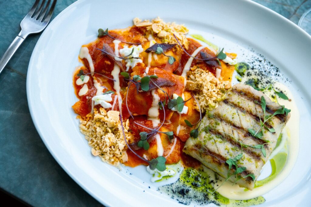 A casa apresenta uma sugestão exclusiva para a data, disponível dias 12 e 13, no almoço e no jantar, e domingo, 14, no almoço. É o Filé de Robalo na brasa com ravióli de queijo de búfala e molho e tomate com anchova, ao valor de R$118,00 para uma pessoa.