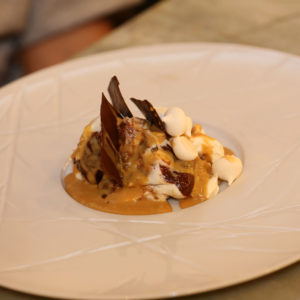 Para adoçar o paladar, a exclusiva Banana Toffe, com creme suspiro, pão de ló e doce de leite. A sobremesa é finalizada à mesa.
