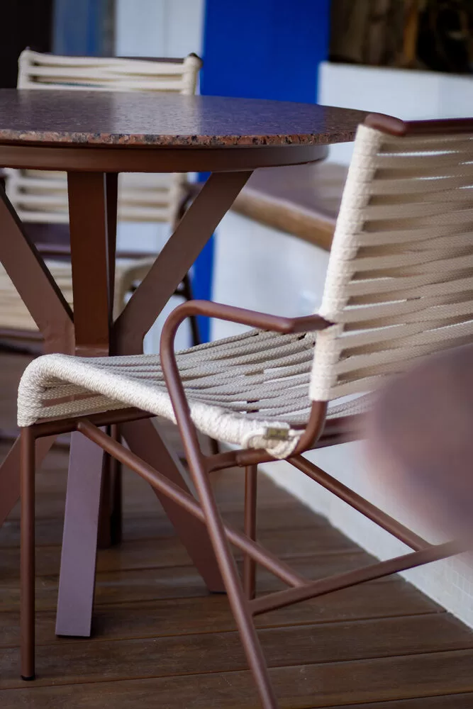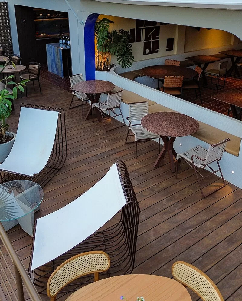 Por fim, no Café, a Sama oferece um cenário de acolhimento e funcionalidade, com as poltronas Brasiliense, também assinadas pela Azo Collab, e as cadeiras Dessana, de Wilson Romão, que unem estética refinada e ergonomia.
