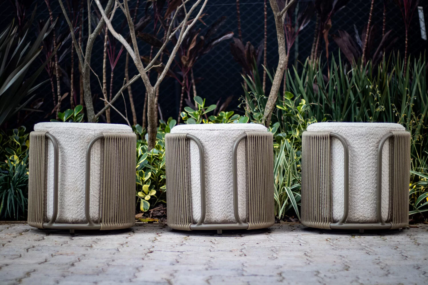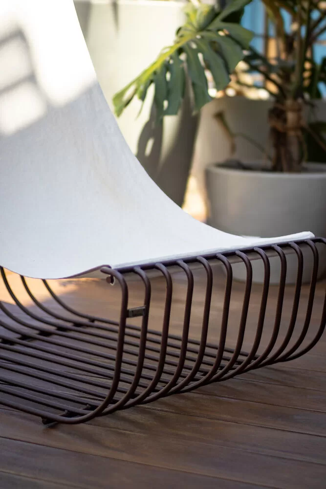 Já na Garagem, a atmosfera contemporânea é marcada pela poltrona e puff Brasiliense, resultado da parceria da marca com a Azo Collab, peças que resgatam a identidade da capital em formas sofisticadas.