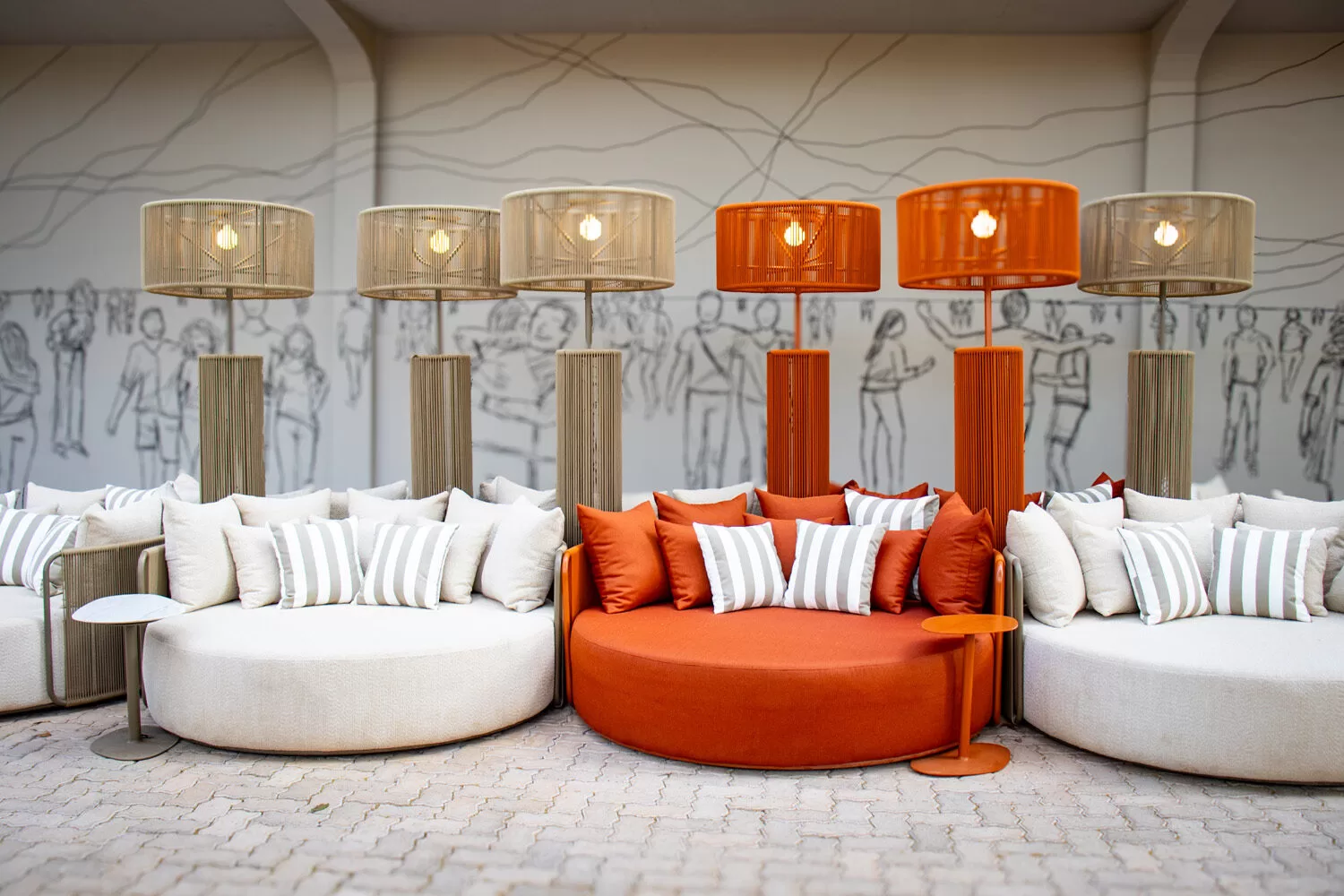 Na Praça, o público é recebido com as chaises e puffs da coleção Abraço, do designer Willian Oliveira, que convidam ao conforto e à contemplação. A composição ganha ainda os bancos da coleção Parquet, criados por Danilo Valle, e as poéticas luminárias Água-Viva, assinadas por Edgard Miguel, que trazem leveza e movimento ao espaço coletivo.
