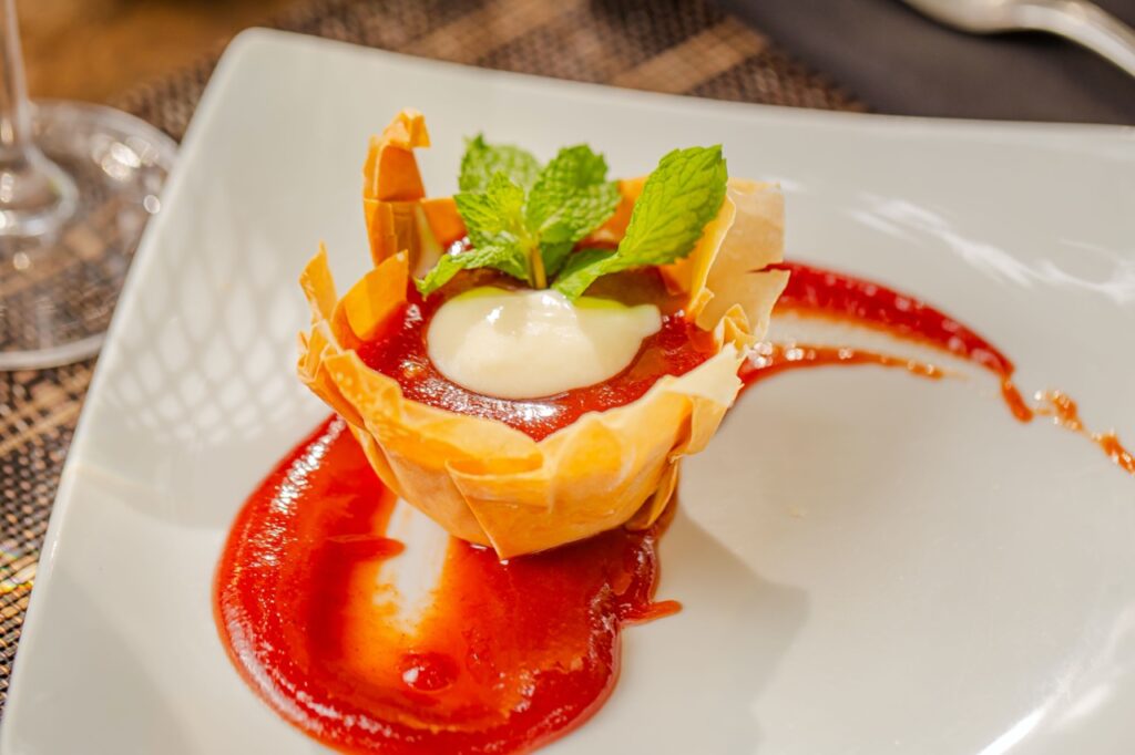 Para encerrar com chave de ouro, as sobremesas oferecidas também prometem encantar. A Cestinha Romeu & Julieta é feita com massa filo recheada de mousseline de goiaba e queijo cremoso, um clássico reinventado. O Pudim sem lactose é uma opção especial e inclusiva oferecida pelo chef Dimas, sem perder o sabor e a textura tradicional. E a Cocada Boa, que acompanha geleia de maracujá e sorvete de creme, é perfeita para os apreciadores de sobremesas tropicais.