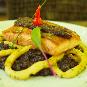 Já no especial do mês, o chef Divino Barbosa, preparou um prato leve, porém, com toque especial. O Salmão grelhado (R$ 86) com geleia de figo desidratado, amora e morango. A delícia é acompanhada de risoto negro com anéis de lula salteados com vinho branco.