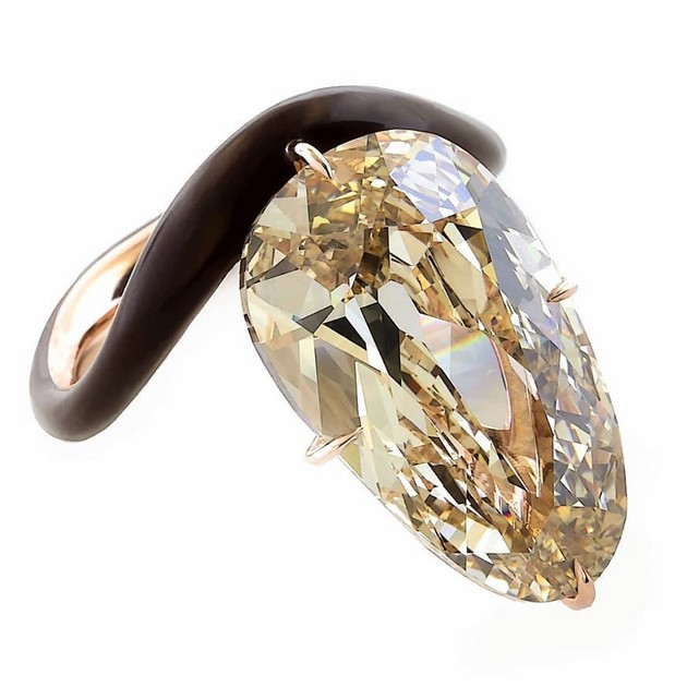 Scarlett estreou sua pedra gigante quando subiu ao palco em São Diego, no domingo (21.07). O anel é supostamente um trabalho de James de Givenchy, da joalheria Taffin, e tem 11 quilates. Com um diamante amarelo e uma faixa escura, está longe de ser a joia tradicional em forma de pera que vemos quando outras celebridades ficam noivas, e é isso que a torna especial.