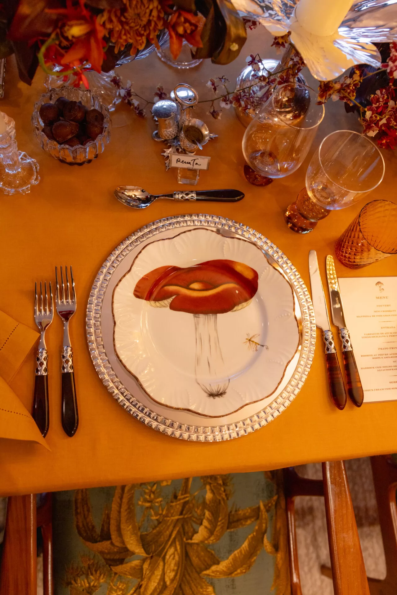 Na última quinta-feira, os arquitetos Sig Bergamin e Murilo Lomas abriram as portas de sua casa para um jantar intimista entre amigos. A mesa, decorada com pratos e talheres que remetiam ao universo dos cogumelos, trouxe um toque lúdico e sofisticado à composição, reforçando o olhar atento da dupla aos detalhes e à estética.