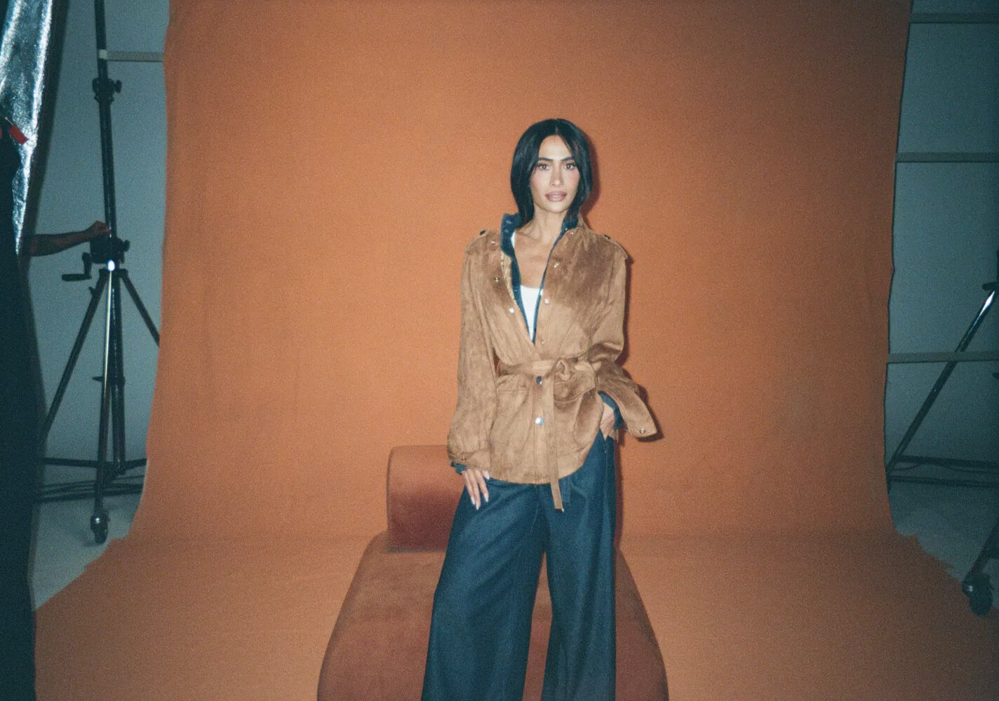 A coleção inclui camisas, jaquetas, calças e conjuntos em tons terrosos e naturais, com destaque para texturas encorpadas e sobreposições. Referências sutis ao boho chic aparecem em estampas e materiais como o suede, além de peças-chave como o trench coat, uma das apostas centrais.