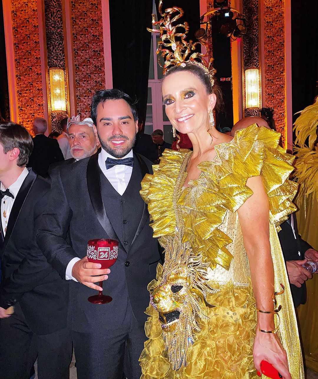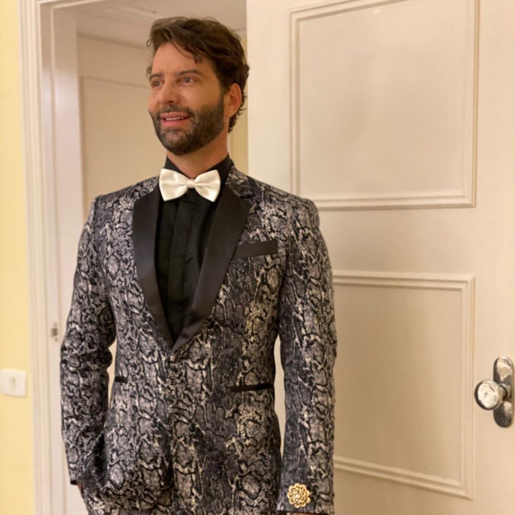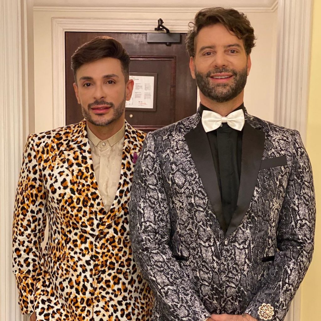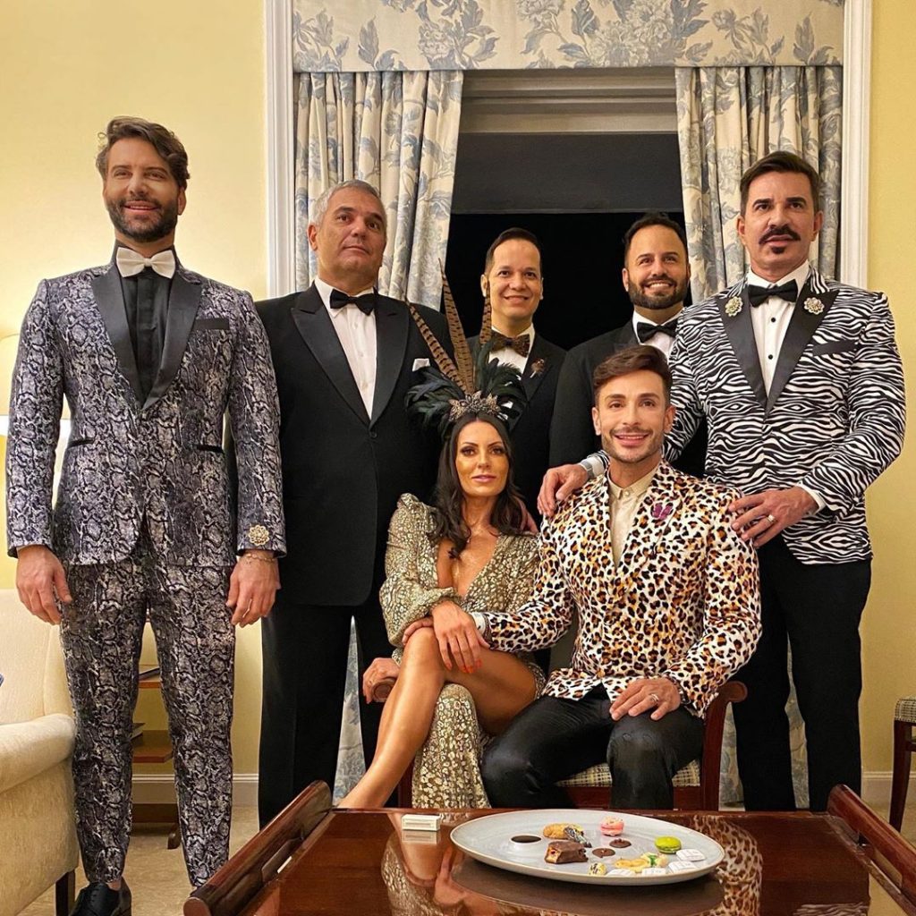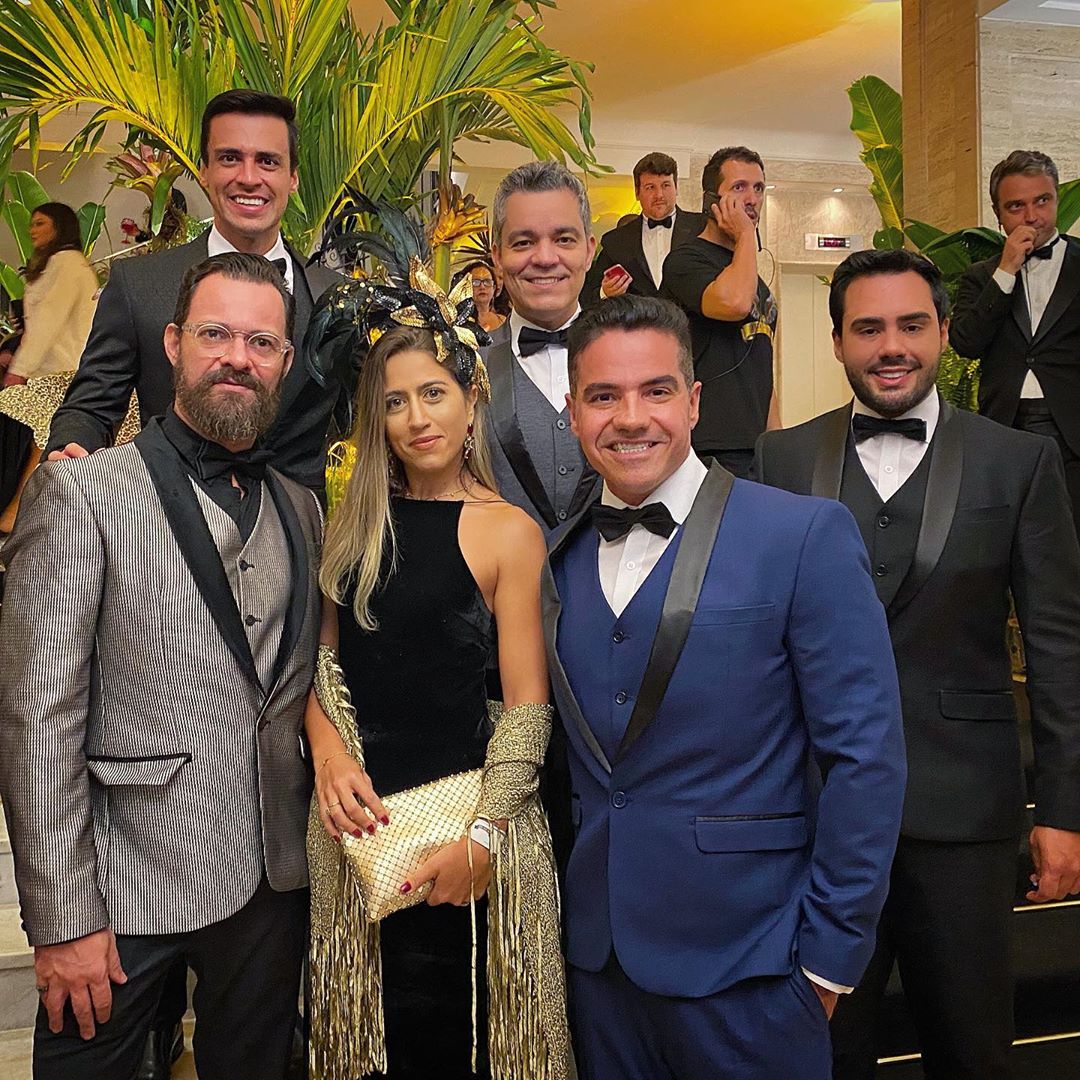 O nutricionista Dr. Clayton Camargos e seu marido, o médico Dr. Caio Mendonça usaram looks animal print assinados pela LC Alfaiataria, sapatos Gucci e Louis Vuitton respectivamente. O cirurgião plástico Dr. Sérgio Morum causou com estampa de cobra também assinada pela LC Alfaiataria.