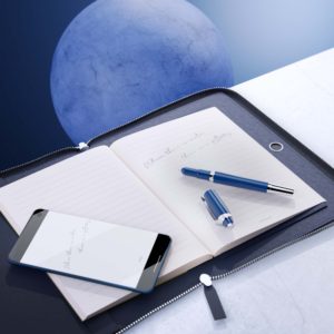 Além disso, para coincidir com o lançamento dos novos instrumentos de escrita, a Montblanc está lançando o Augmented Paper StarWalker Blue Planet – um estojo com zíper em couro azul contendo um caderno e um instrumento de escrita StarWalker. A inovação de escrita da Montblanc combina o prazer de uma experiência real de escrita no papel com a nova StarWalker com a eficiência da digitalização do trabalho, para que possa ser facilmente compartilhado, armazenado e organizado digitalmente. Unindo perfeitamente os mundos online e offline, este companheiro de trabalho simples e altamente funcional integra a escrita tradicional ao fluxo de trabalho digital, com anotações escritas e esboços transferidos instantaneamente do papel para um dispositivo digital com o simples toque de um botão.