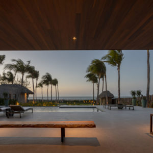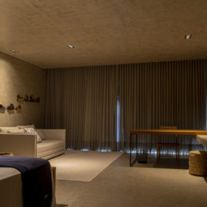 Segundo Maura, uma casa de praia requer cuidados específicos para manter um ar sofisticado e leve. É preciso o uso adequado de luminárias técnicas, que não interfiram na estética e que valorizem e se integrem com a natureza local. Para que isso fosse possível, o Studio Pro + utilizou a iluminação direta que entra em sintonia com os elementos, juntamente com a iluminação indireta para dar equilíbrio e profundidade.