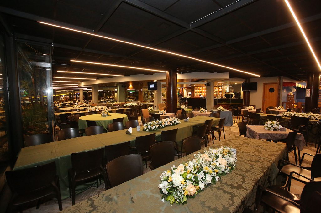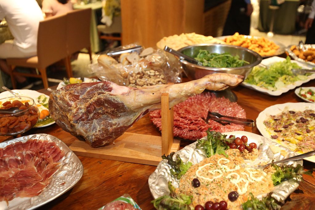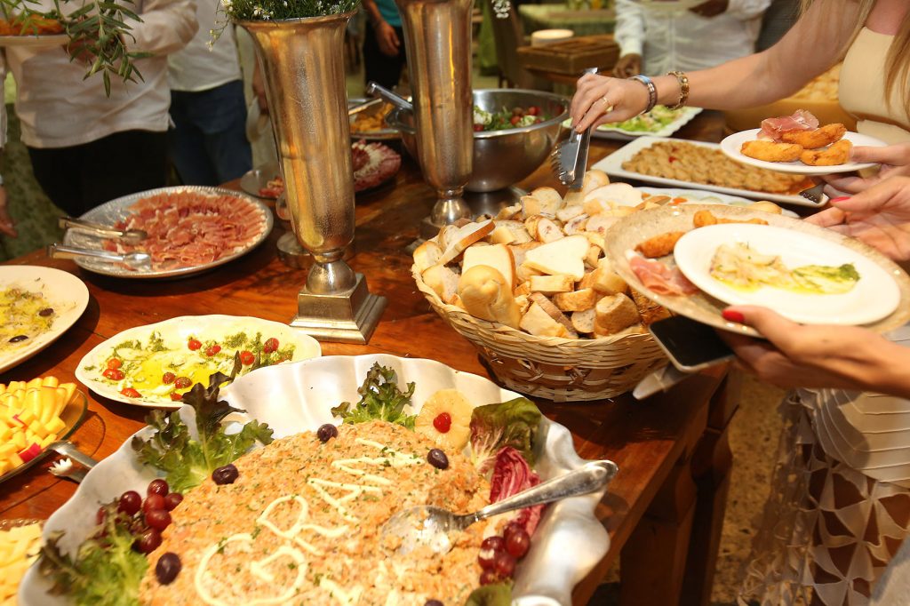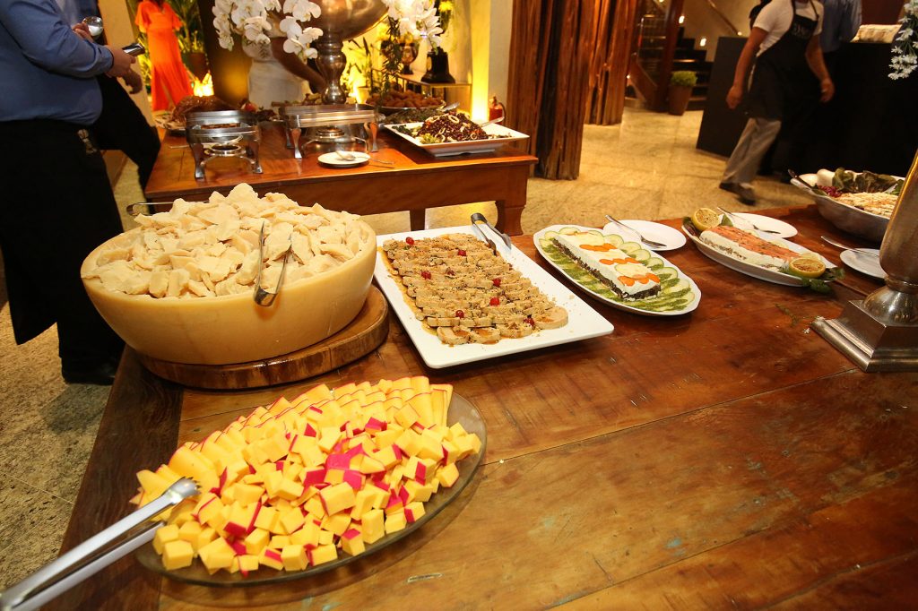 As portas se abriram às 21h e logo na entrada um lounge para fotos com a palavra ‘Sucesso’ como cenário além de flores e arranjos de rosas amarelas, rosas e brancas em todas as mesas reservadas. No menu, buffet de entradas com terrinas de salmão, vegetais e porco; queijos (gouda, brie, grana padano, provolone); presunto cru; salame; saladas variadas; tartar de salmão; carpaccios de carne, bacalhau e pupunha; ceviches clássico e nikei. Entre os pratos principais, Leitão à pururuca; peru recheado; fricassé de cordeiro; pato ao molho de laranja; bacalhau ao forno; camarão crocante; filé mignon com bacon e molho de vinho; sorrentino recheado com salmão e cream cheese; almôndegas de berinjela; bolinho de bacalhau; cassoulet de frutos do mar; risoto de Grana Padano; batata no azeite; arroz com frutas secas; arroz branco e brócolis no alho. De sobremesa, bolo de churros com doce de leite e chocolate; banoffee; morango e suspiro com leite ninho, cupcake de red velvet; mousse de maracujá; bolo de chocolate com laranja e morango; apfelstrudel e frutas da estação.