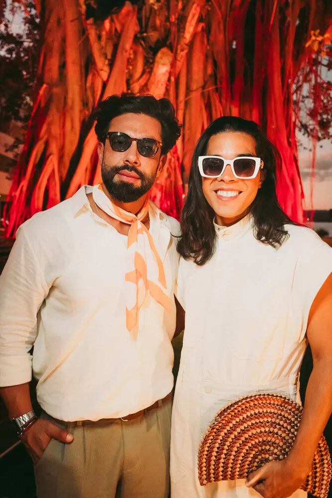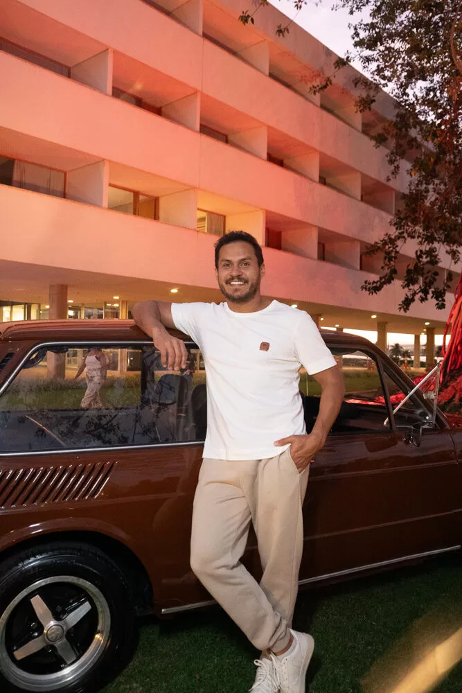 Recebendo os convidados estavam os sócios Dan Moreira e Inozor Junior, que escolheram a data e o local a dedo: “É mais do que uma coleção, é uma reverência à memória afetiva e estética de Brasília”, comentou Inozor..