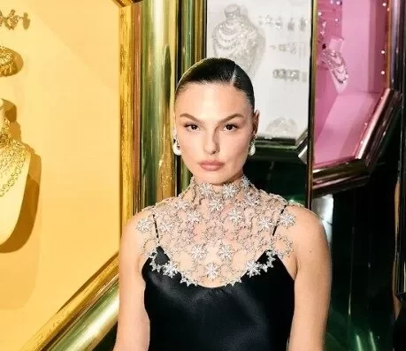 A bordo de um vestido de silhueta fluida em seda preta, com recortes sutis que evidenciam a sofisticação minimalista da marca, Isis Valverde incorporou o espírito de elegância e brilho que marcou a noite em Los Angeles. A atriz completou o visual com acessórios Swarovski inéditos, incluindo a icônica peça anteriormente usada por Madonna, composta por mais de doze mil cristais e resultado de 86 horas de trabalho artesanal.