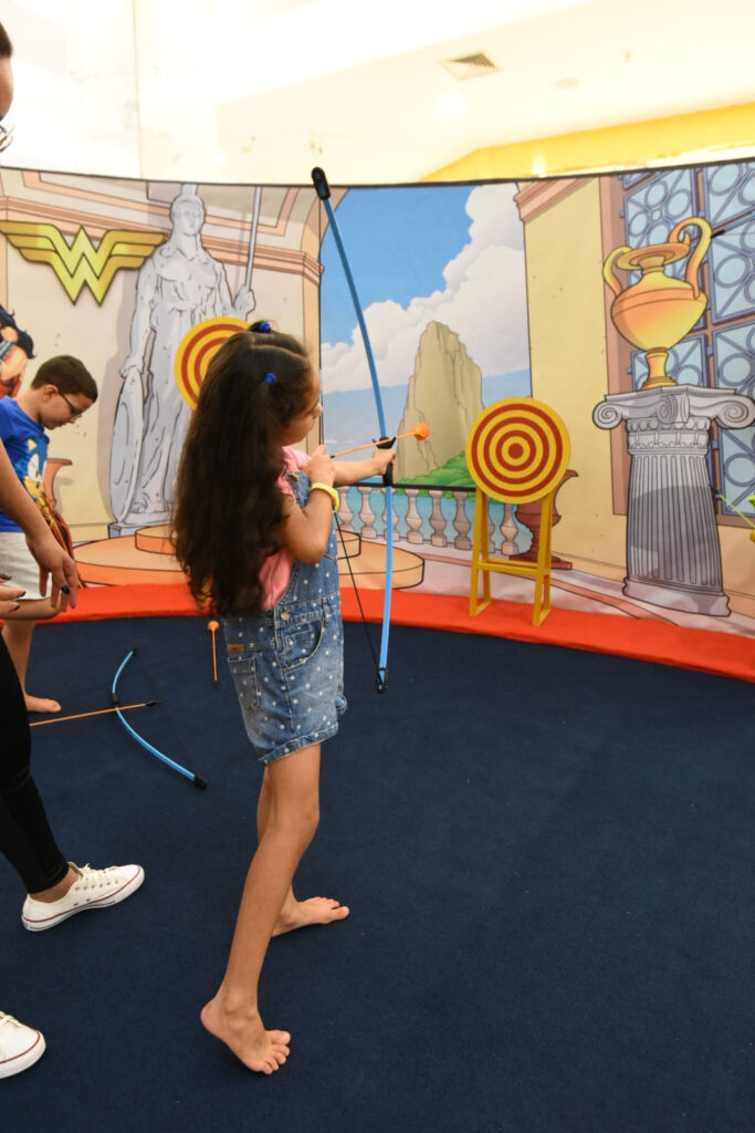 Já a Arena da Mulher Maravilha promete uma verdadeira aventura com oficinas de arco e flecha para vivenciar os treinos na heroína e uma parede de escalada que remete ao famoso Monte Olimpo.