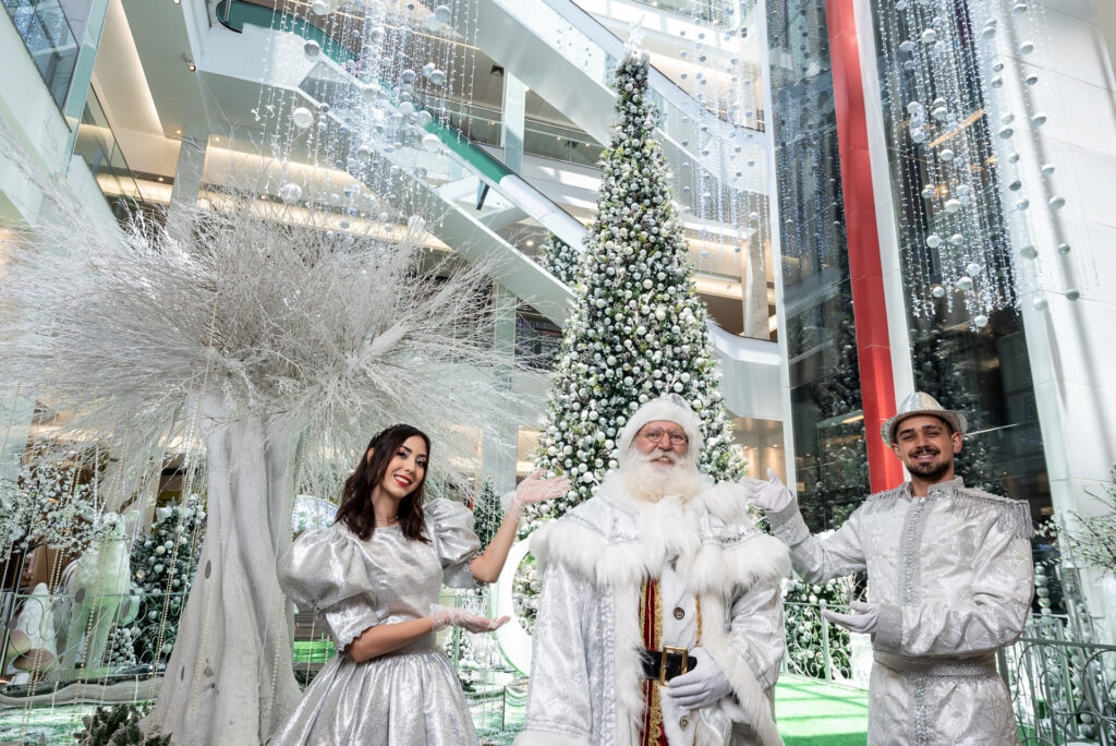 Dentro do shopping, os tons de branco, prata e verde marcantes na decoração oferecerão uma festa inigualável: o Festival na Neve. O cenário principal, assinado com exclusividade pela empresa Cipolatti, conta com uma bela árvore de 13 metros de altura: durante a visita, o público terá acesso a um ambiente completamente novo dentro dela. Nele, terão uma linda surpresa. As paredes e o chão estarão totalmente iluminados, cheios de espelhos e muitas luzes, fazendo referência a um grande caleidoscópio, tornando-se o perfeito cenário para muitas fotos. A decoração também promete divertir a criançada com um carrossel gratuito e espaços instagramáveis para garantir registros inesquecíveis com a família.