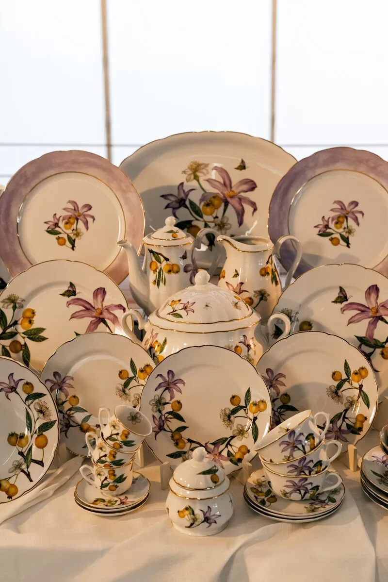 Produzida em porcelana com detalhes em ouro, a coleção destaca elementos da flora nativa, como a canela-de-ema, com seus traços esculturais, e a guariroba, símbolo de resistência em solos áridos. O resultado é uma estética que valoriza a brasilidade com elegância, traduzida em formas orgânicas e design autoral.