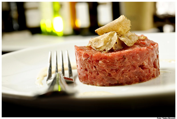 O começo da experiência é com o Crostone Di Pane Con Uova e Tartufo Bianco, um pão do Piselli com ovo poché, creme e lâminas de trufas frescas (R$590); ou com a Carne Cruda Con Zabajone, um filé mignon picado na faca, zabajone trufado e lâminas de trufas frescas (R$590).